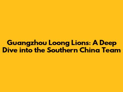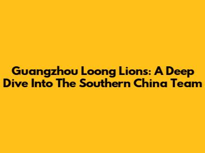 Guangzhou Loong Lions: A Deep Dive Into The Southern China Team