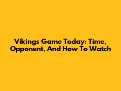 Vikings Game Today: Time, Opponent, And How To Watch
